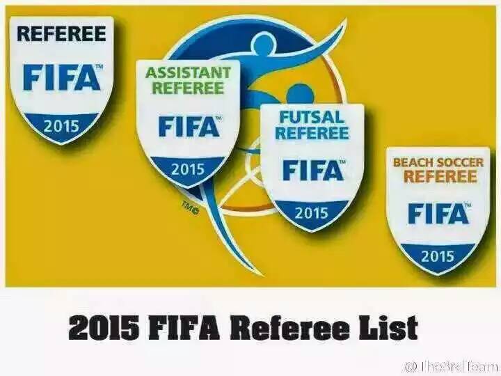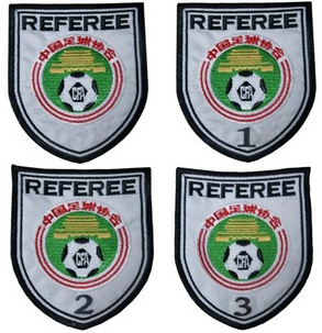 (图)国际级裁判员胸徽(从左至右:主裁判、助理裁判、五人制足球裁判、沙滩足球裁判)