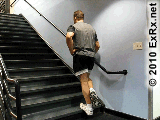 (2)锻炼小腿肌肉的提踵练习:提起脚跟,稍停顿后再缓慢下落至最低限度,使小腿肌群充分伸展。在台阶上单腿提踵10次,然后马上换另一只腿。两脚做5组,每组10个,中间不休息。