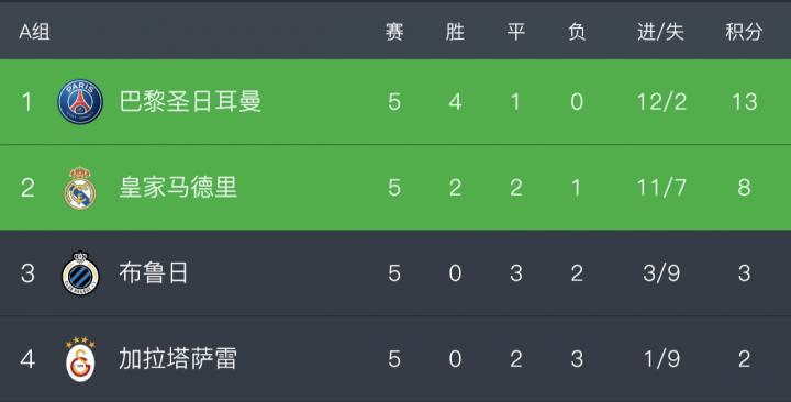 预测排名:巴黎圣日耳曼、皇家马德里、布鲁日、加拉塔萨雷