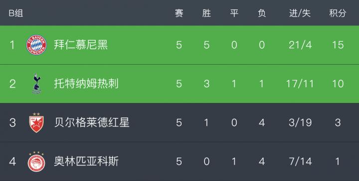 预测排名:拜仁慕尼黑、托特纳姆热刺、贝尔格莱德红星、奥林匹亚科斯