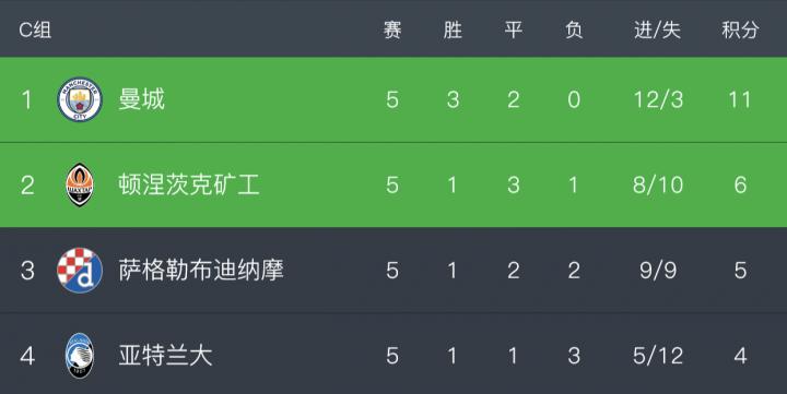 本组形势颇为有趣。除曼城一骑绝尘外,另外三队都有机会,最值得一提的是亚特兰大。亚特兰大前3轮全败共丢11球,结果在主场逼平曼城又拿下萨格勒布后,贝尔加莫军团强行把悬念拉了回来。最后一轮,如果亚特兰大客场战胜矿工而萨格勒布主场不胜曼城(可能性极大),他们就将在复仇(第2轮主场1-2)的同时踩着对手的肩膀晋级16强!即便萨格勒布爆冷胜曼城,亚特兰大获胜也有欧联杯可踢。