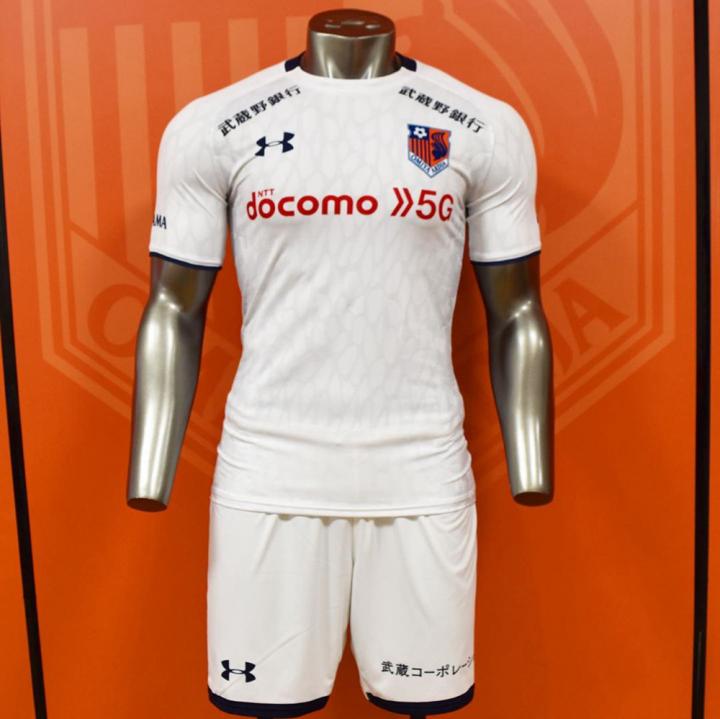 新赛季客场球衣同样以传统的白色外观示人,并在衣领与袖口处加入黑色装饰。客场球衣上加入的云朵提花暗纹源自球队主场附近的武藏一宫冰川神社的神纹(神社纹章)——“八云”(八雲),球衣前后正中加入一条贯穿提花暗纹的白色条纹,寓意球队穿越险阻赢得胜利的道路,以此为身在客场为大宫这座城市而战的球队祈福。