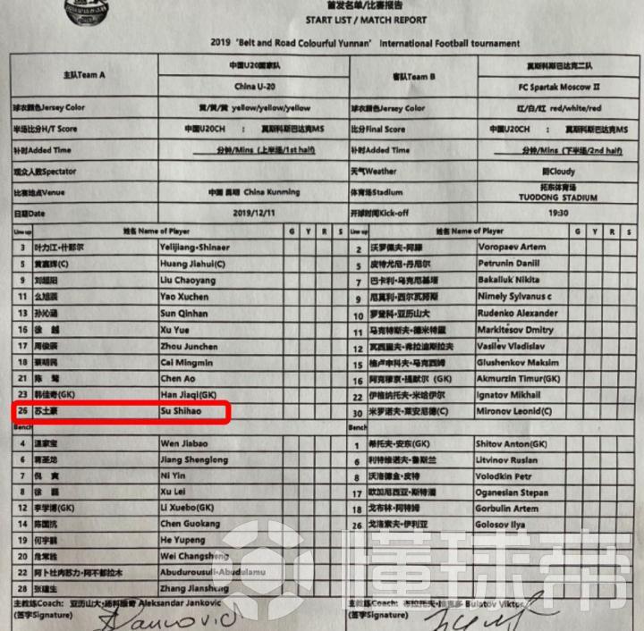 在本场比赛中,上海申花小将苏士豪代表U20国青首发出场,不过在首发名单中,苏士豪的名字却被错误地打印成了“苏土豪”。