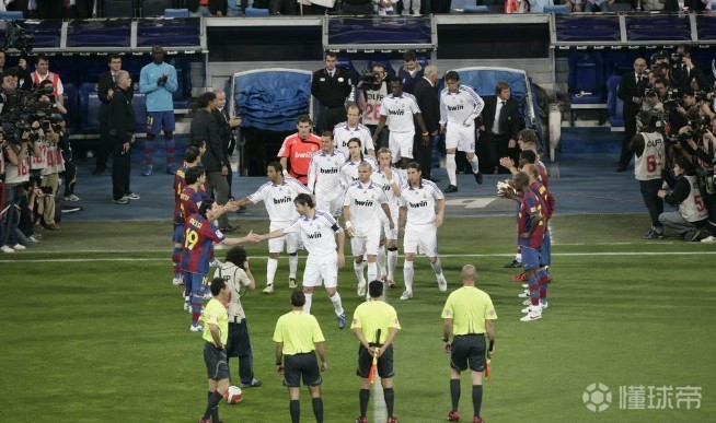 巴萨为提前夺冠的皇马列队欢迎,彼时巴萨正处于梦二到梦三的过渡时期,皇马在此后没有想到在西甲联赛中会一直被巴萨压制。