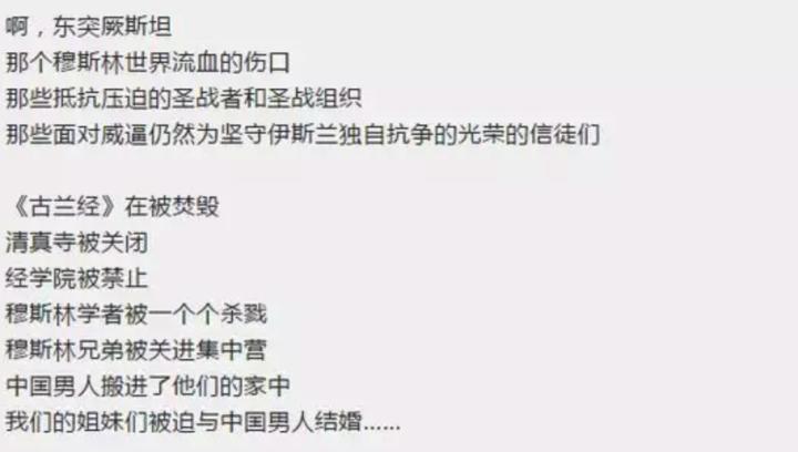 有多恶毒?他的言论不仅大造谎言,挑拨民族关系,还公然鼓吹“圣战”、“东突”,文字背景还给配上了“东突”旗帜的图片,透出一股浓浓的恐怖主义气息。