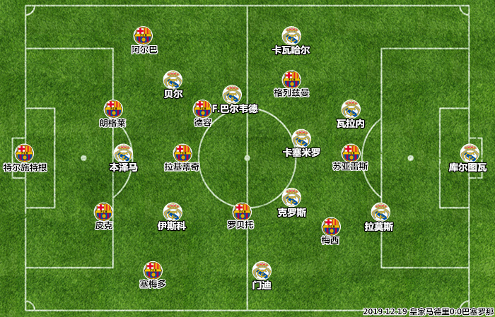 在洛佩特吉和索拉里时代,皇马与巴萨的差距达到了近年来的最大值,两位少帅的下课都是源于国家德比的失利。齐达内现阶段帅位稳固,但考虑到国家德比的成败对主帅的风评影响太大,法国人选择了较为保守的客战策略,帮助球队步入连胜轨道的双边锋阵型(433)被搁置,只在强强对话中拿下两场平局的四中场体系(442)成为了皇马的阵型蓝本,“老将”贝尔和伊斯科成为首发,新秀罗德里戈和维尼修斯被留作后手。