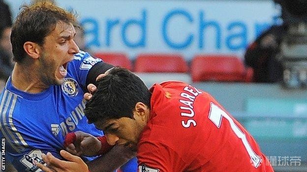 在与切尔西的比赛中,苏亚雷斯对伊万诺维奇的这一咬,让观众们瞠目结舌。