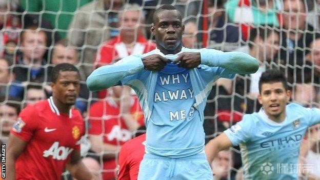 没错,就是著名的“why always me”,在曼城这场6-1战胜曼联的比赛中,巴洛特利打进进球后霸气庆祝。