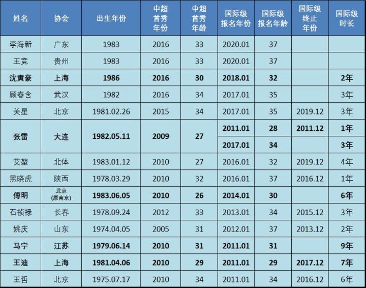再看看从11至19这九年间新晋国际级裁判首次报名时的年龄,九年期间只有两位超过了35岁,就算此前亚足联有这个35岁的年龄限制,对我国的国际级裁判也是没有太大影响的,结果今年想调整国际级裁判了,却发现候选人只有两位83年出生的,试问现任裁判主管真的没有感到自己过于保守了吗?
