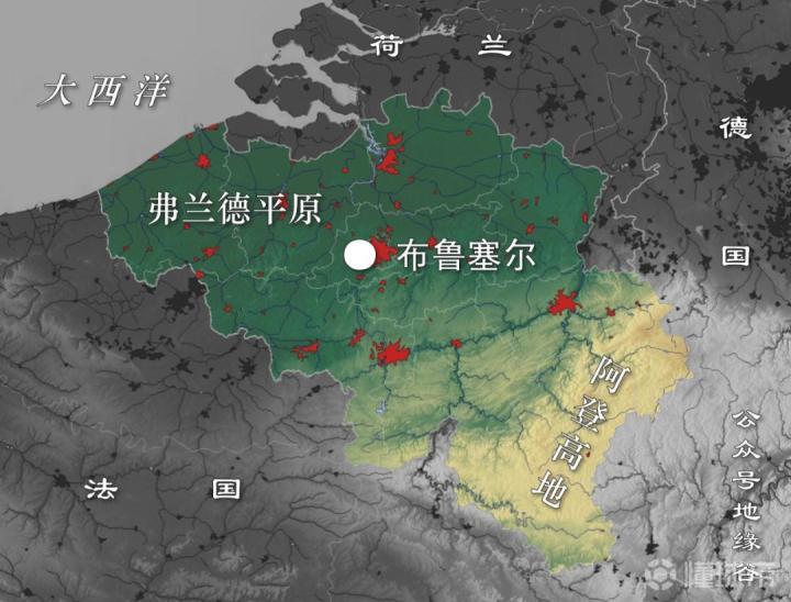 现在的比利时这块地方,东临德国,南靠法国,北接荷兰,西北部是北海沿岸的弗兰德平原(低地国家称谓的由来),中部是丘陵地带,东南部是阿登山区,地理位置相当抢眼,有种三国时代的荆州夹在曹孙刘三家之间的感觉,在欧洲历史上也总是被抢来抢去的。