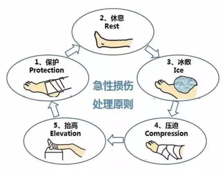 1、当崴脚发生时,应立即停止运动,实施加压、冰敷、抬高、休息的方式(RICE原则),控制伤部的内出血和炎症增加,然后及时判断是否出现骨折。