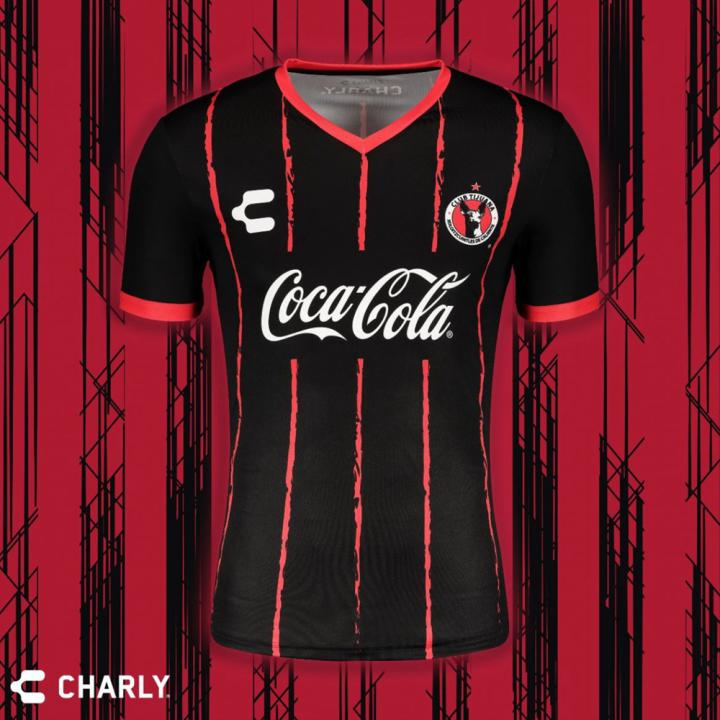 Charly Fútbol × Coca-Cola联名球衣系列包括5件设计各异的球衣,其中内卡萨与蒂华纳两家俱乐部均拥有两款球衣,将可口可乐标志性的红色包装作为球衣的标志性色彩,并将经典的飘带与“Coca-Cola”字样融入球衣设计中。而桑托斯拉古纳这件球衣则采用了不常见的黑色作为球衣主色,并且加入绿色图案,不仅让人想到了可口可乐公司旗下的另一款知名饮料——雪碧。