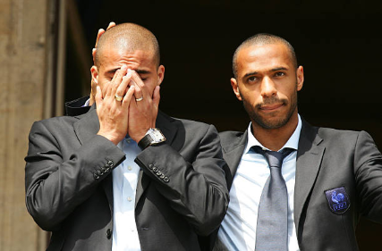 点球大战中,特雷泽盖的射门被门柱挡出,看着意大利人疯狂庆祝,他哭成泪人,亨利默默的送上拥抱和安慰。回到法国后,面对球迷深表歉意的特雷泽盖再次泣不成声,此次站出来的还是亨利,他恳求球迷能给这个男人更多掌声和鼓励。