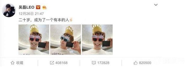 照片中吴磊戴着生日皇冠以及生日蜡烛的眼镜,拿着驾照拍合照,露出洁白的牙齿,笑的很是开心。恭喜,吴磊年满二十岁,并且成为有本的人。