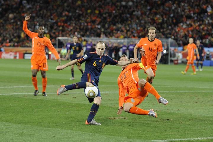 新王之战,常规时间罗本错失了单刀赴会改写历史的千载良机,加时赛上伊涅斯塔一锤定音帮助西班牙先于荷兰一步,成为了世界杯的第八个王者。