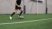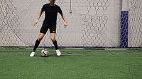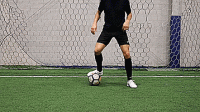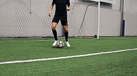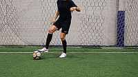 最后用另一只脚的脚内侧将球控制住,并从相反的方向重复。