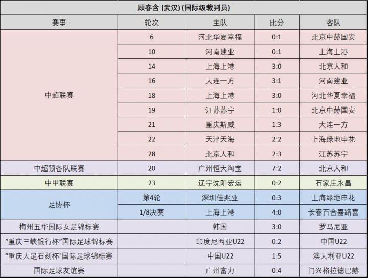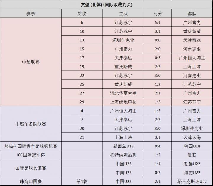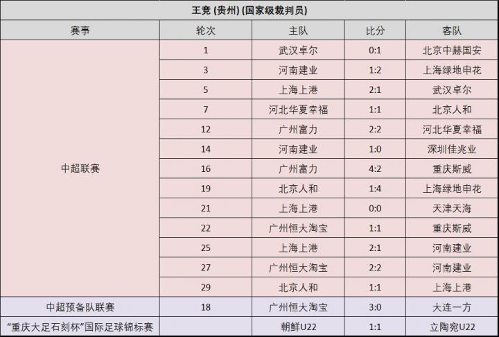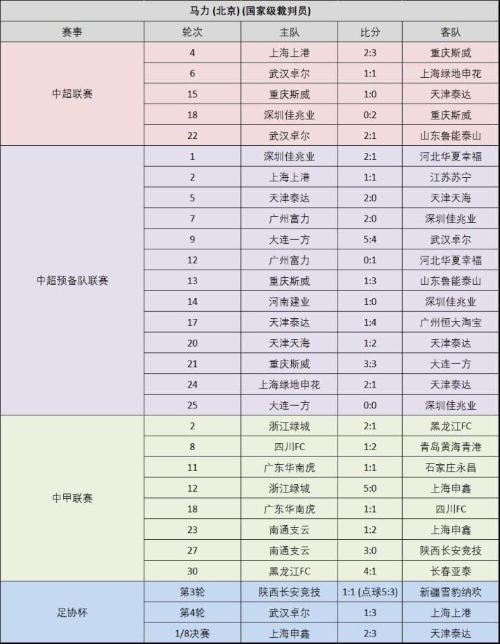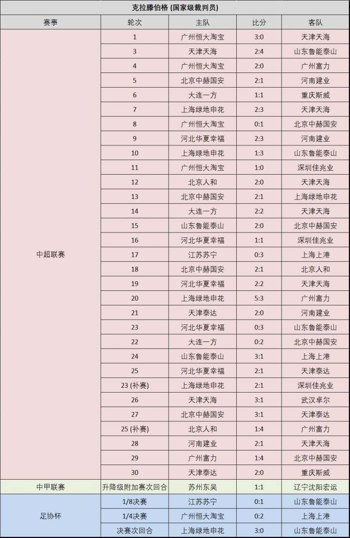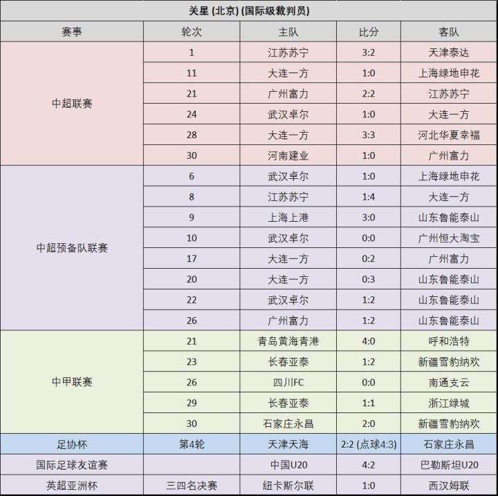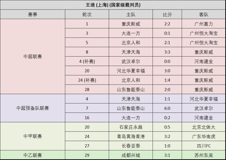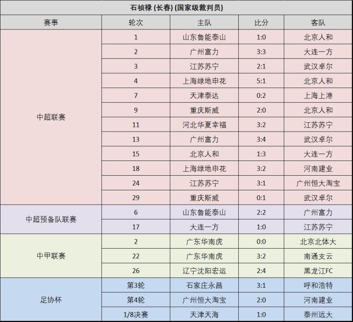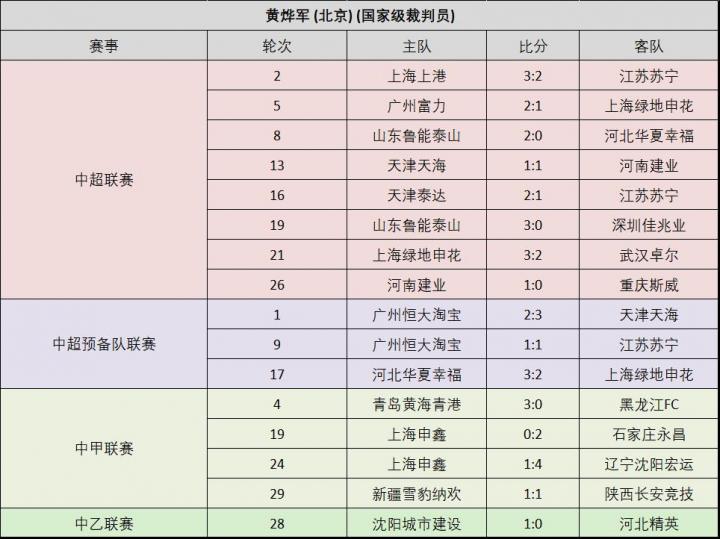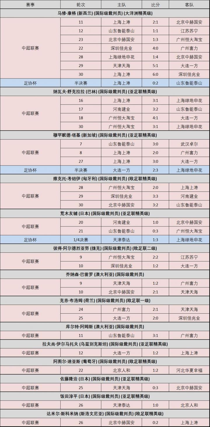 附:16位上场执法比赛的中超裁判员的执法场次记录
