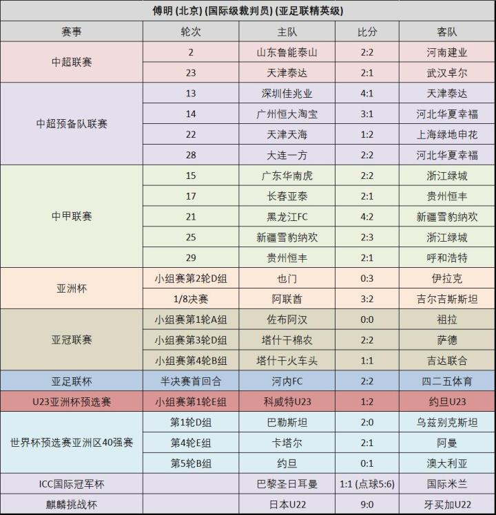 傅明在今年首场中超的执法就惹出了巨大的争议,在有VAR的情况下做出三次离谱的判罚,在那之后也被长时间停哨,最终一年下来执法的国际赛事比国内联赛还要多。不过这也并非一个一无所获的赛季,至少傅明在国际赛事中作为VAR的执法得到了亚足联的认可,而且有希望以VAR的身份晋级世界杯。
