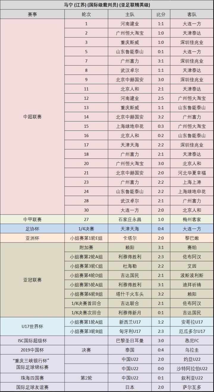 马宁今年的执法表现可以用“越来越稳”来形容,21场的中超执法,仅有那么两三场的判罚引起了争议,其中争议最大的国安富力一役的主要责任还是在VAR,具体分析请移步至文章https://m.dongqiudi.net/article/1186344.html。在国际赛场上,上赛季圆满完成亚冠决赛执法任务的马宁今年更加受到亚足联的重用,本赛季在亚冠执法了1场附加赛、5场小组赛以及2场淘汰赛,共计8场的执法场次也是所有亚冠裁判中最高的。