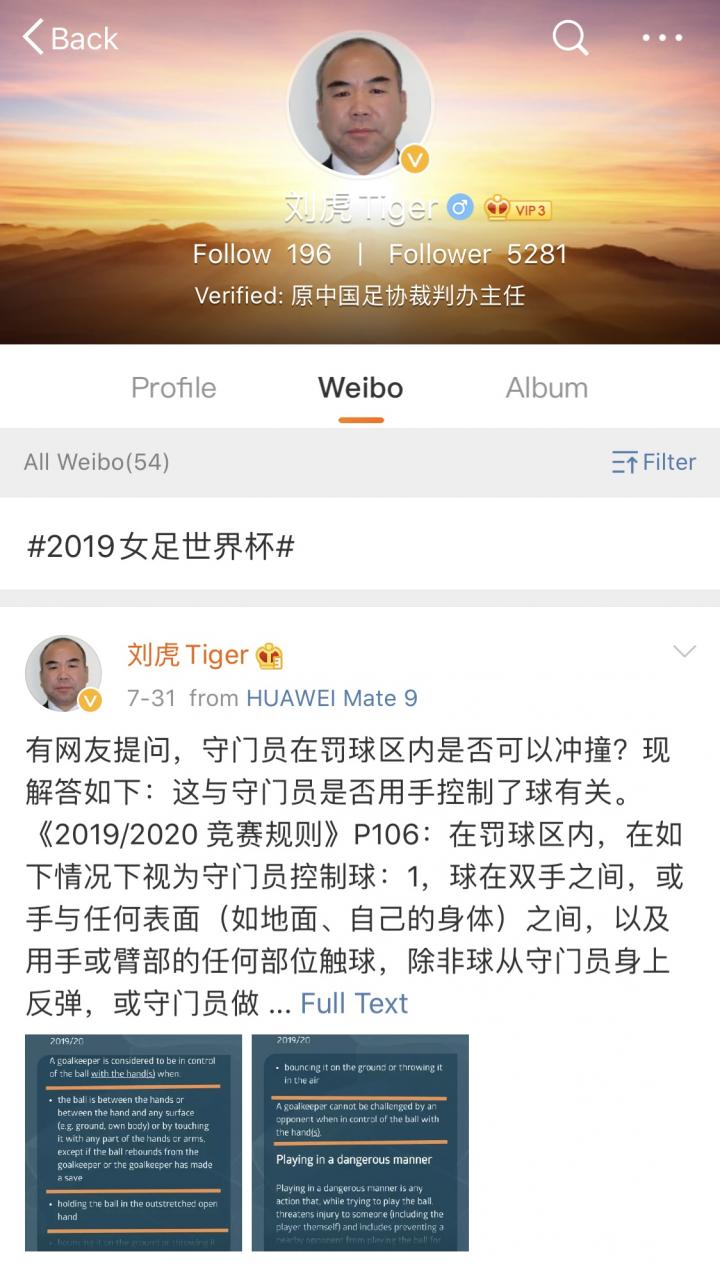 曾记得去年说过,如果能有足协内部的专业人士从专业的角度来解读判罚,争议可能就不会有那么大,没想到这个本不现实的想法这么快就实现了。本赛季初,原足协裁判办主任刘虎开始在微博上从足球竞赛规则的角度解读中超裁判的判罚,并且还附上过不少规则截图。可是结果呢?评论区更多的是各种无脑地骂声,而关于规则以及判罚的理性讨论少之又少。人们似乎更加关注他解读了哪些判罚,同时又忽略了哪些,然后得出足协人士偏袒某支球队的结论,并大肆辱骂一番。最终刘虎的微博自7月31日起就再也没有更新过。