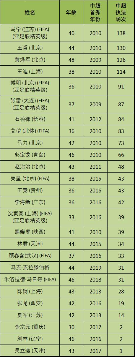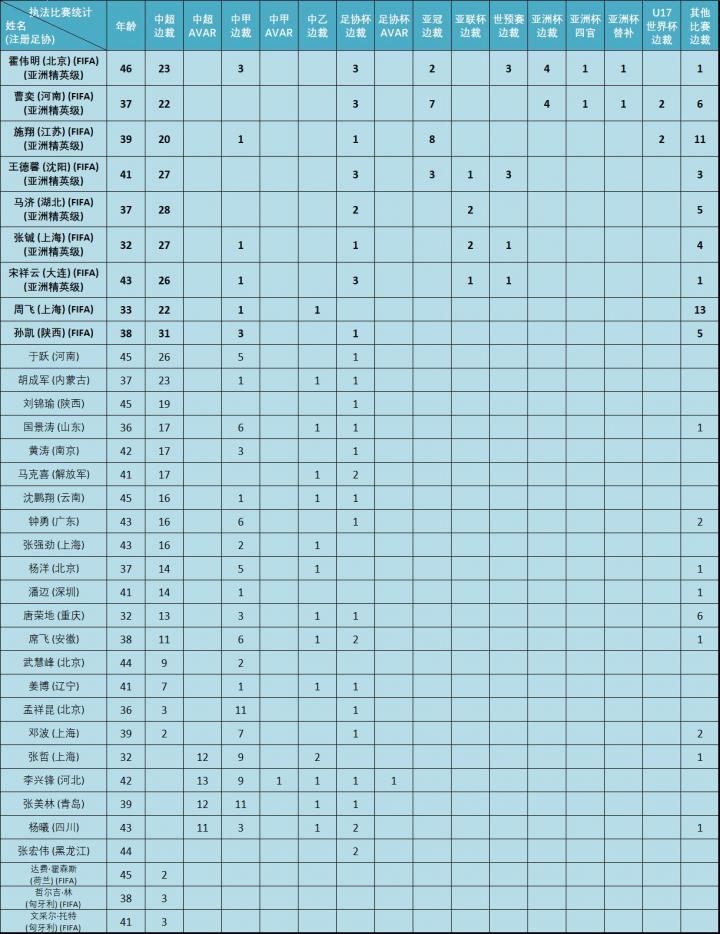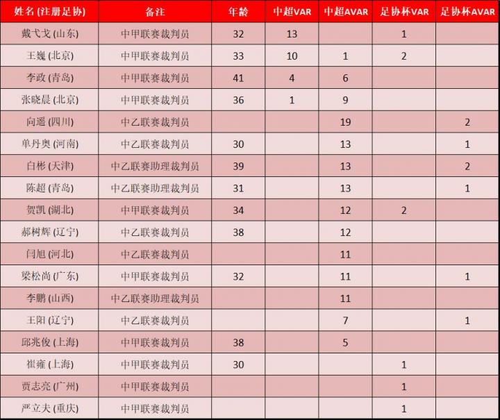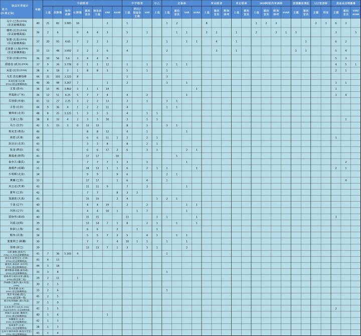 (图) 中超联赛专职VAR、AVAR执法场次统计 (部分中甲中乙裁判员的年龄无从考证)