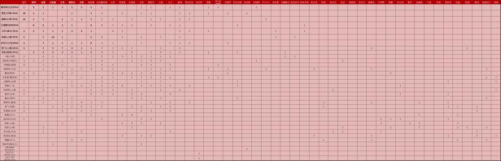 (图) 2019赛季中超助理裁判与裁判员搭档执法各项赛事场次记录:横轴为裁判员,纵轴为助理裁判员 (粗体为国际级裁判员)