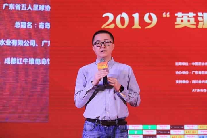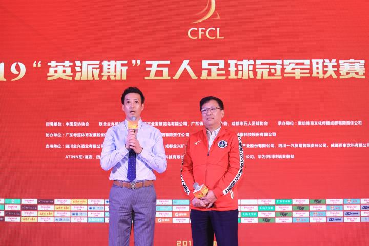 五冠联赛掌门人昕虹均体育董事长邹侑根首先上台感谢在场嘉宾的莅临,广东省五人足球协会会长刘孝五用四川话欢迎来宾,他说:成都是一个来了就不想走的城市,五冠联赛总决赛在这里举行绝对是明智之举。赛事总冠名商青岛英派斯健康科技股份有限公司副总经理冯纵前先生随后上台,表达了对今年五冠联赛的举办非常满意。