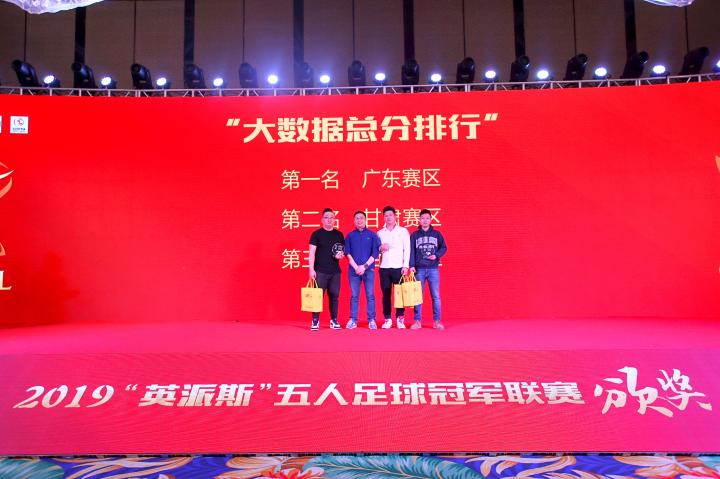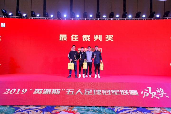 颁奖嘉宾:国务院足球改革部际联席会议办公室相关成员、中国足球协会社会足球部官员曾民、青岛英派斯健康科技股份有限公司副总经理冯纵前、昕虹均体育董事长邹侑根、广东省五人足球协会会长刘孝五