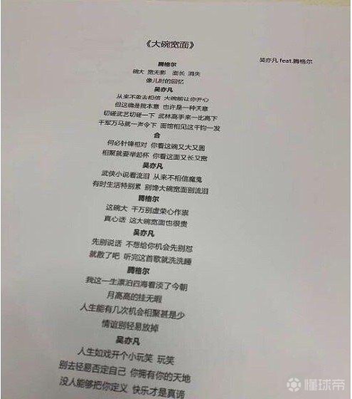 《大碗宽面》,吴亦凡的经典曲目。