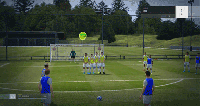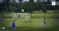 如果主罚球员的弧线数值很高,那么可以再往左瞄准半个身位(用人墙最右侧的球员的肩膀对准门柱)。