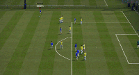 注意:现在用这个方法的玩家越来越多,许多玩家有意识手控球员随时上来封堵射门,所以接球后要多加留心。
