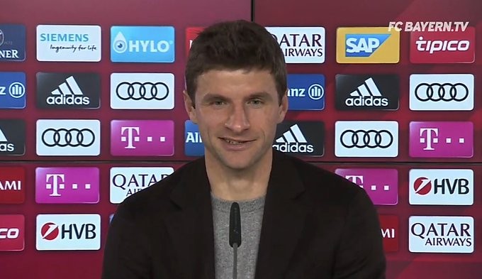 在随后接受场边德国媒体采访时,调皮的穆勒笑着说:“我想试试他的隐形眼镜。不适合我呀……”