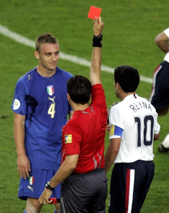 初次征战世界杯的德罗西也不改自己的强悍的防守风格,在首场对阵加纳的比赛中第10分钟就吃到了黄牌,好在蓝衣军团靠着皮尔洛和亚昆塔的进球轻取非洲劲旅。然而次回合,德罗西的凶悍就起到了反作用,第28分钟,在一次争抢中,德罗西恶意肘击对方前锋麦克布莱德,美国国脚顷刻间血流满面,而德罗西也毫无争议地领取了红宝石卡郁闷下场,最终意大利仅仅和美国战成了1-1。