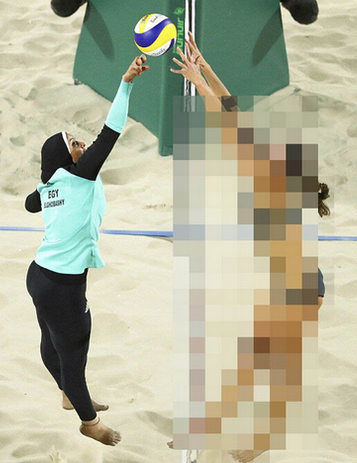 冰冻三尺非一日之寒,伊朗国内对女性的保守态度由来已久并且异常坚固。原本针对女性观看体育比赛的禁令只局限于足球等项目,2014年却顶着国际社会的舆论,反而加上了排球等其他赛事。2016年埃及女沙滩排球运动员戴着头巾、穿着长衣长裤参加了里约奥运会,这则新闻得到了也门、叙利亚等多个阿拉伯国家媒体的持续关注。但只有在伊朗媒体的报道里,埃及选手对面身穿比基尼的德国选手全都变成了马赛克。