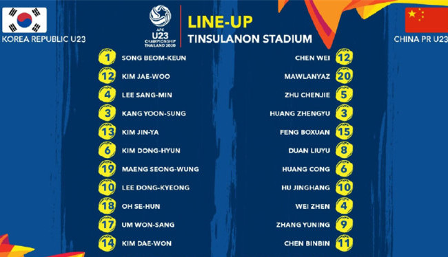 再看韩国国奥队的首发安排,门将是来自全北现代的宋范根,效力于日职乙的队长李相珉与姜允盛、金载雨和金镇冶组成了球队后防线。中前场方面,孟成雄和金东炫搭档双后腰,金大元和严原上分居两侧,李东炅位于中场中路,效力于K2联赛的吴世勋顶在中锋位置。