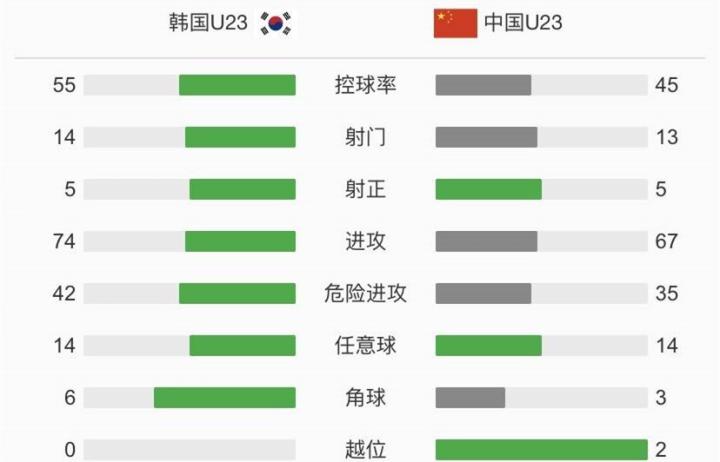 纵观全场比赛,国奥在射门数13-14落后,射正数5-5打平,进攻次数和危险进攻则分别以116-133和35-42落后。从数据来看,国奥本场比赛的差距其实并不明显,临场对比中最多也就是4-6开,可惜的是球队在最后一传和一射方面的表现确实存有不足,特别是几次进攻创造出威胁后却没有把握住最后机会,最终与宝贵的进球乃至失利失之交臂。