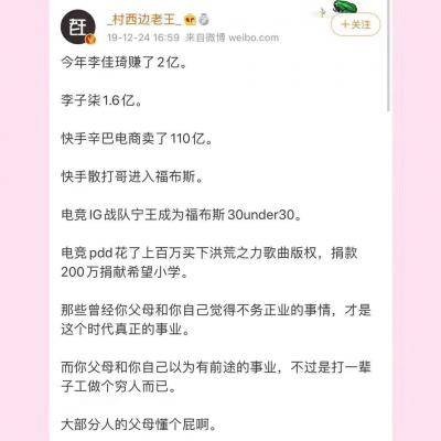 @董一一 发这个动态的兄弟一定不知道搞那些东西成功的都是凤毛麟角,比明星出彩的比例还要少,知识、学习一定是改变命运最好的方式。