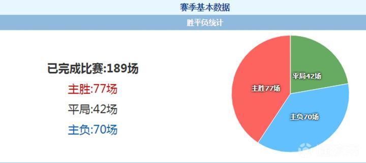 1、五大联赛最低主胜率与最高客胜率:上半程意甲已经结束的189场比赛中,以主胜结束的比赛77场(40.7%),以平局结束的比赛42场(22.2%),另有70场以客队取胜(37.0%)。