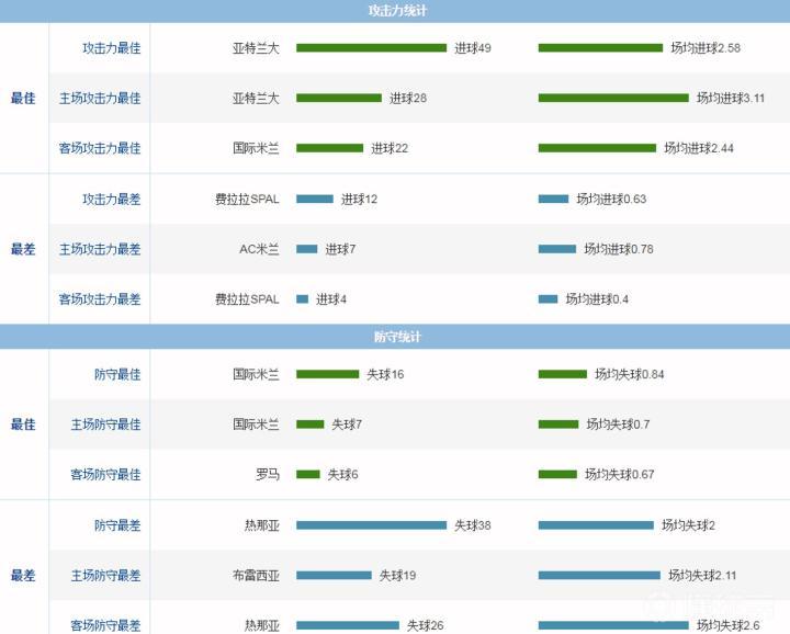 3、尤文攻防均不拔尖,亚特兰大撼动尘封纪录:尤文图斯在本赛季意甲联赛的攻防两端都不突出,其中进攻只排在第4,防守也只排在第3。本赛季意甲最突出的无疑是亚特兰大,他们半程打进49球,成功打破尘封60年的意甲半程进球纪录!