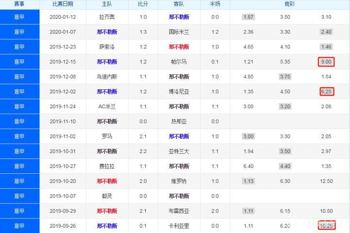 2、单固无冷门!那不勒斯尤文均成冷门场次常客:在153场竞彩开售的赛事中,赛果最冷门的一场,莫过于那不勒斯主场输给卡利亚里,客胜奖金10.25,这也是唯一一场竞彩胜平负赛果10倍以上的场次。事实上,那不勒斯也堪称本赛季意甲的“冷门之王”,共有3场比赛打出4倍以上的冷门,是冷门场次出线频率最高的球队;此外尤文图斯也是易出冷门的球队,虽然他们没有爆冷输球的“黑历史”,但是也有过两次冷平的经历。而值得注意的是,所有开售单固玩法的场次中,并没有出现4倍以上的彩果。动荡的那不勒斯是本赛季的冷门制造者