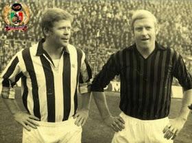 哈勒(左)和施内林格(右),两位前西德国脚在60年代代表祖云达斯和AC米兰同场上阵。
