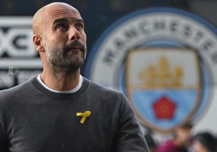 (图)瓜迪奥拉与他坚持佩戴上场的“黄丝带”