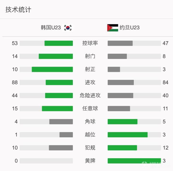 北京时间1月19日18:15,U23亚洲杯1/4决赛的一场较量在泰国曼谷打响,韩国队对阵约旦队。上半场,李东俊助攻曹圭成首开纪录,韩国1-0领先约旦;下半场,阿提亚助攻奈马特扳平比分,伤停补时最后一分钟,李东炅任意球绝杀,最终韩国2-1约旦,晋级四强。