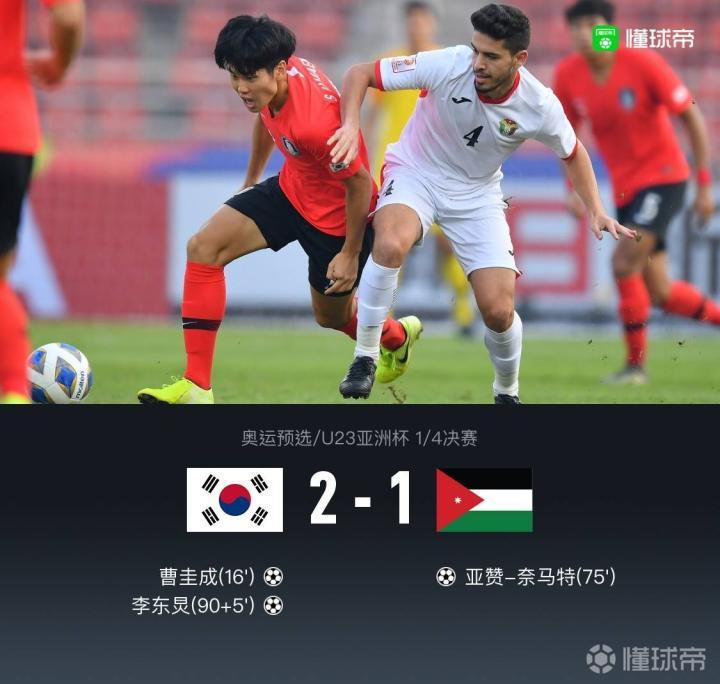 U23韩国2-1战胜约旦,李东炅读秒绝杀