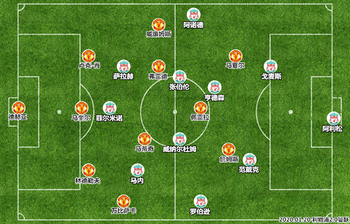 定位球防守百密一疏,曼联在运动战中对红军锋线强点的限制还是比较成功的。中路人数密集,马奎尔和马蒂奇等人都是正面防守能力出众的球员,边路肩负单防任务的球员擅长缠斗,索尔斯克亚打造的3412阵型很好地突出了曼联球员的特点,取得了事半功倍的效果。