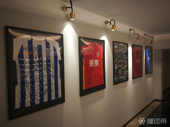 罗强的家里,摆放着诸多中国俱乐部的签名球衣,以及自己多年来和许多球员、教练、俱乐部管理者工作往来的合影,还有费耶诺德俱乐部送给他的护腿板。放眼望去,就像一个小型的足球博物馆。