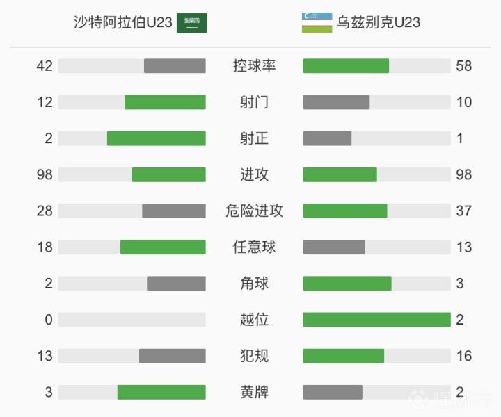 北京时间1月22日18:15,奥预赛半决赛的一场比赛,U23沙特阿拉伯对阵乌兹别克斯坦。最终,上半场双方都没能取得进球,沙特在进攻方面保持主动;下半场,最后时刻,替补登场的纳赛尔-奥姆兰破门,随后加里卜打空门得手但越位被吹,最终U23沙特1-0绝杀乌兹别克斯坦晋级决赛。