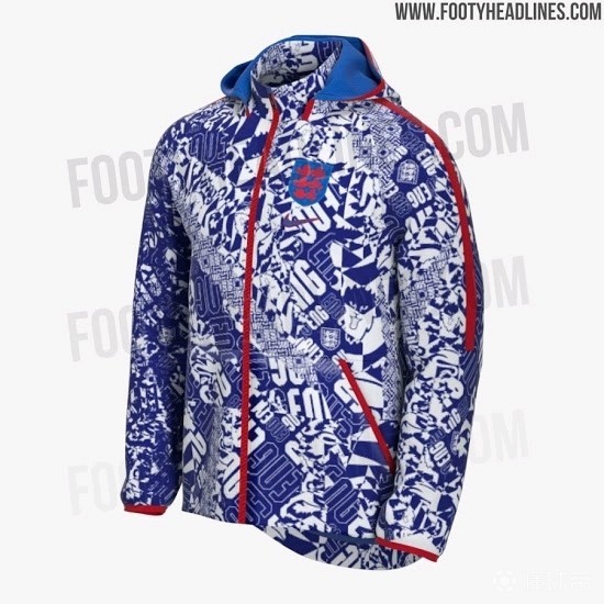 除了客场球衣外,该网站还曝光了英格兰的欧洲杯外套。这件外套的设计则更加“浮夸”,该网站在描述这件外套的设计时甚至用了“简直是疯了”这样的字眼。