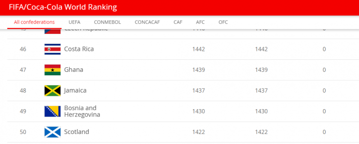 (图)最近的FIFA世界排名,苏格兰刚好处在第50位