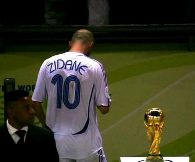 头顶、倒地,红牌、离去、背影。这就是齐达内留给世界足坛的最后答案,一代中场大师,以如此戏剧性的方式结束了自己的职业生涯,齐达内与大力神杯擦肩而过的瞬间,也成为了永恒的经典画面。